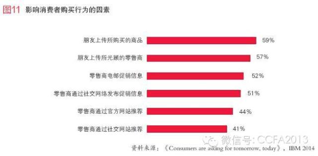 从影响消费者购买行为的因素来看,朋友在社交网络上的推荐越来越成为影响消费者购买决策的决定性的因素,而由于社交网络的移动化,这也在一定程度上反应了移动端的重要性。(见图11)