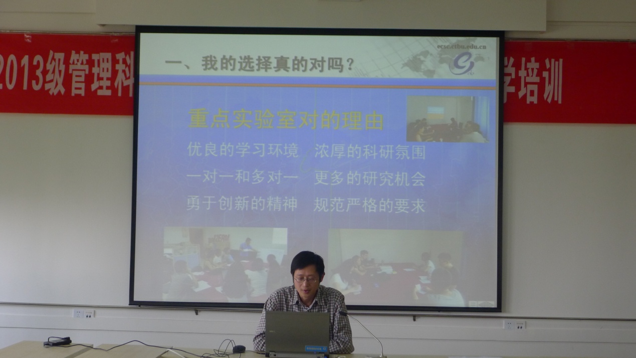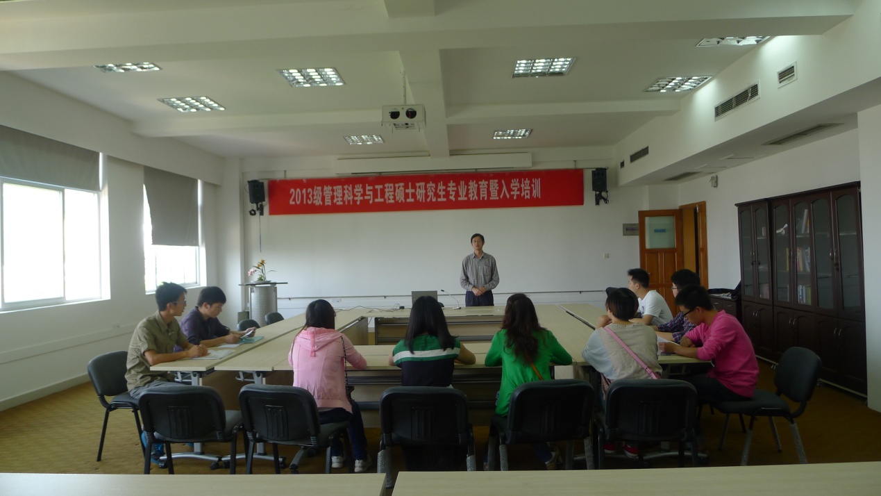 图1 2013级管理科学与工程硕士研究生新生专业教育暨入学培训现场