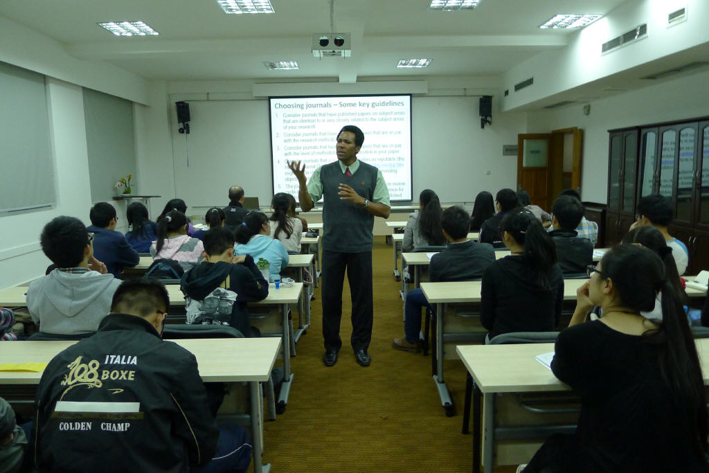 霍顿教授从选题技巧、写作应该遵循的方法、如何从在研课题中提炼出创新点、论文投递和发表的过程中要注意的问题等诸方面进行了详细的解说。