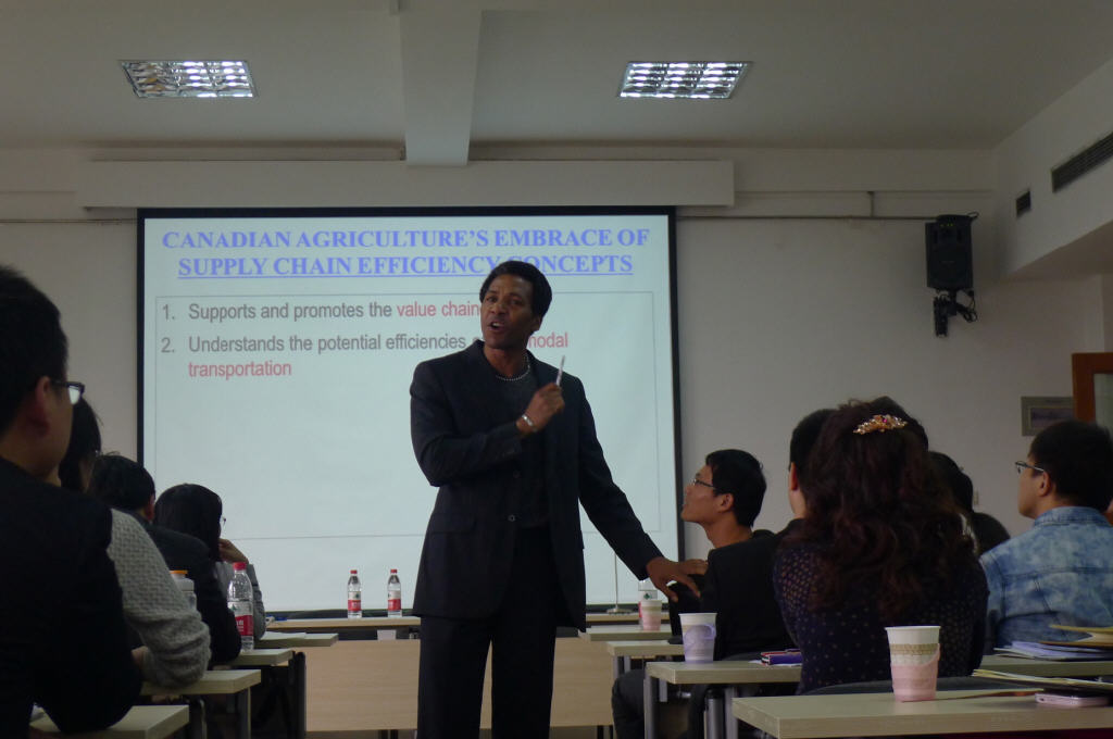 下午下半段论坛报告由重庆工商大学龚英教授主持。来自加拿大劳里埃大学的Michael A.Haughton教授、民生物流有限公司蒋啸冰总经济师、电子商务及供应链系统重庆市重点实验室常务副主任黄辉教授分别就加拿大农产品物流发展(About agricultural