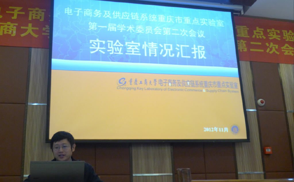 在上午进行论坛的同时,电子商务及供应链系统重庆市重点实验室(重庆工商大学)第一届学术委员会第二次会议也在进行。会议由学术委员会主任委员、西安交通大学博士生导师李琪教授主持。首先,重点实验室常务副主任黄辉教授向学术委员们汇报了重点实验室的一年来的主要工作。随后,各位委员就重点实验室的进一步建设和发展,以及开放项目指南进行了热烈的讨论,提出了许多启发的建议和意见。