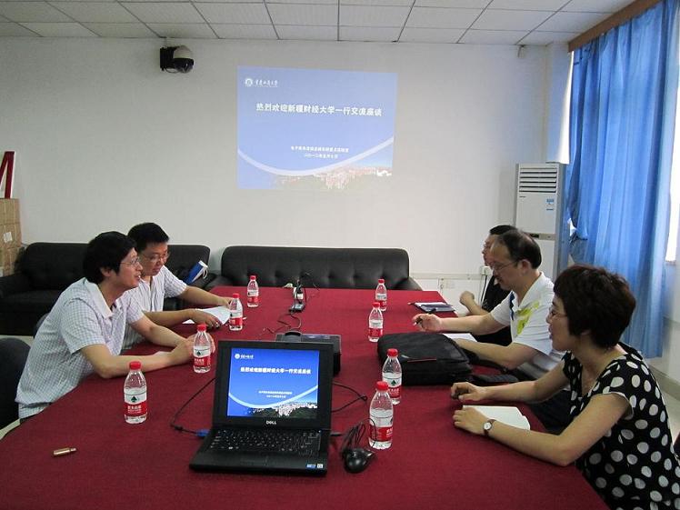 听完黄辉教授的介绍,张教授一行对实验室在短短两年时间内取得的成绩表示赞赏,就他们所关心的重点实验室申报、运行管理中会涉及的一些问题进行了现场咨询。随后,双方就共同感兴趣的问题进行了广泛的交流,同时也探讨了新疆财经大学与电子商务及供应链系统重点实验室今后合作的广阔前景。