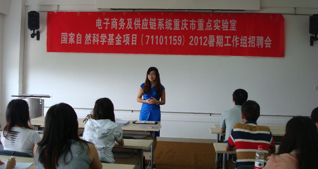 为进一步做好国家自然科学基金项目研究工作,探索人才培养方式和途径,2012年6月15日下午,电子商务及供应链系统重庆市重点实验室(重庆工商大学)在启智楼406多功能厅举行了面向校内外广大同学及各专业人士的助理研究员招聘会。