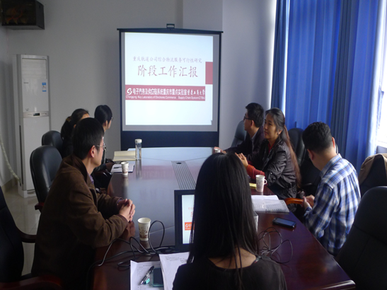 2014年10月24日上午9:30,重庆轨道公司刘总一行来我校参加重点实验室研究生对重庆轨道公司综合物流服务可行性研究的阶段工作汇报,实验室常务副主任黄辉及本次项目相关人员参加了本次交流汇报工作。