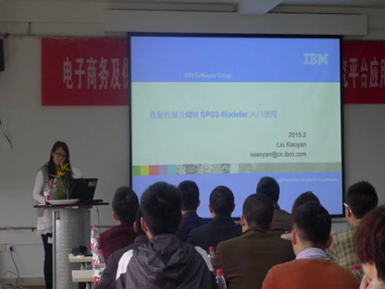 2015年3月18日,重庆工商大学电子商务及供应链系统重庆市重点实验室大数据分析研究平台应用培训会第一阶段在启智楼406成功举行,本次培训讲师是来自IBM公司的软件工程师刘晓燕,培训的内容为数据挖掘及IBM SPSS Modeler的入门使用,培训分上午和下午两个部分进行。这次培训吸引了部分实验室的师生,还有感兴趣的校内外老师、研究员和博士生、硕士生。