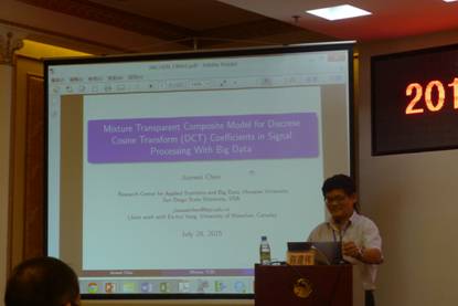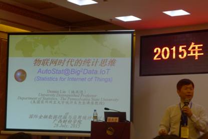 出席本届研究会的有厦门大学曾五一教授、美国圣地亚哥州立大学陈建伟教授、美国耶鲁大学马双鸽教授、美国宾州州立大学林共进教授等国内外学者、教授。他们分别在研究会上做了“大数据时代统计学的机遇与挑战”、“Mixture Transparent composite model for discrete cosine transform (DCT)in signal processing with Big Data”、“Big Data:Devil in detail”、“Statistics for Internet of Things”的大会报告。
