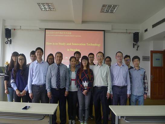 Zurita教授在报告中,介绍了瑞典大学教育的基本概况,包括学士、硕士和博士等高等教育体系的构成,以及本科生和研究生申请瑞典大学的具体要求等。他还重点介绍了瑞典的创新体系,尤其是政府、企业和高校协同创新的架构,以及ABB、沃尔沃、宜家等知名瑞典企业的创新过程和模式。讲座完成后,Zurita教授还与现场师生进行互动,对听众提出的问题进行了认真的解答。