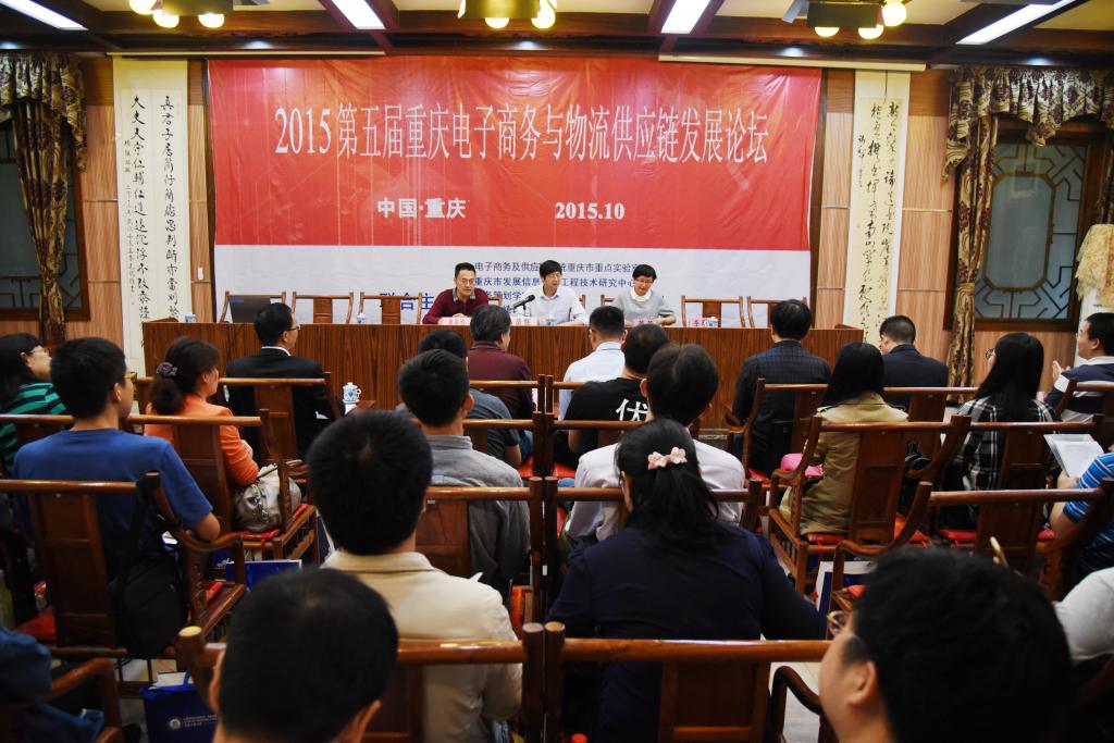 2015年10月24日,由电子商务及供应链系统重庆市重点实验室举办的“第五届重庆电子商务与供应链发展论坛”分别在重庆工商大学南山书院和实验室406成功举行。本次论坛的主讲人分别是:来自重庆工商大学的李川教授,詹川副教授,重庆大学王勇教授,华南城乾龙物流运营总监丁兵,重庆交通大学张子健教授,中国客创学院的王众民院长,重庆摩农电子商务有限公司肖章勇董事长,金山软件公司西山居工作室高扬架构师,全球全物流交易网简万龙CEO,后勤工程学院物流研究所刘红娟副教授,北京国信灵通网络科技公司刘勇技术总监。此次论坛有各高校的学术界人士和企业界人士参加。