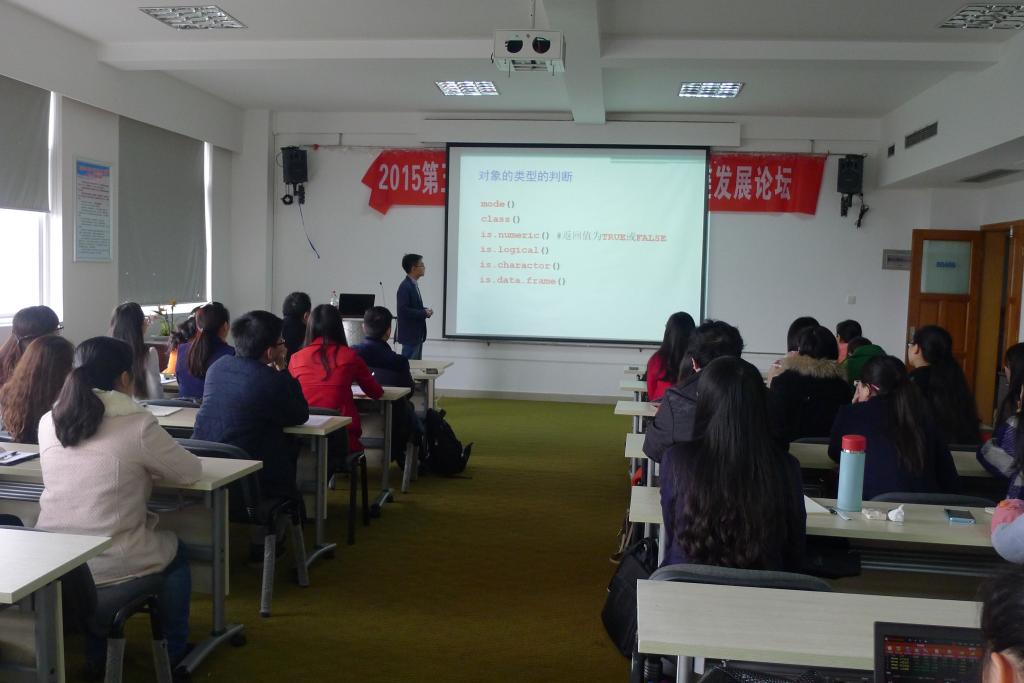 此次讲座主要讲授了R是一门用于统计计算和作图的语言,它不单是一门语言,更是一个数据计算与分析的环境。在讲授过程中,杨炜明副教授为我们演练了R语言在大数据中的运用,让我们看到了R的神奇和强大之处。