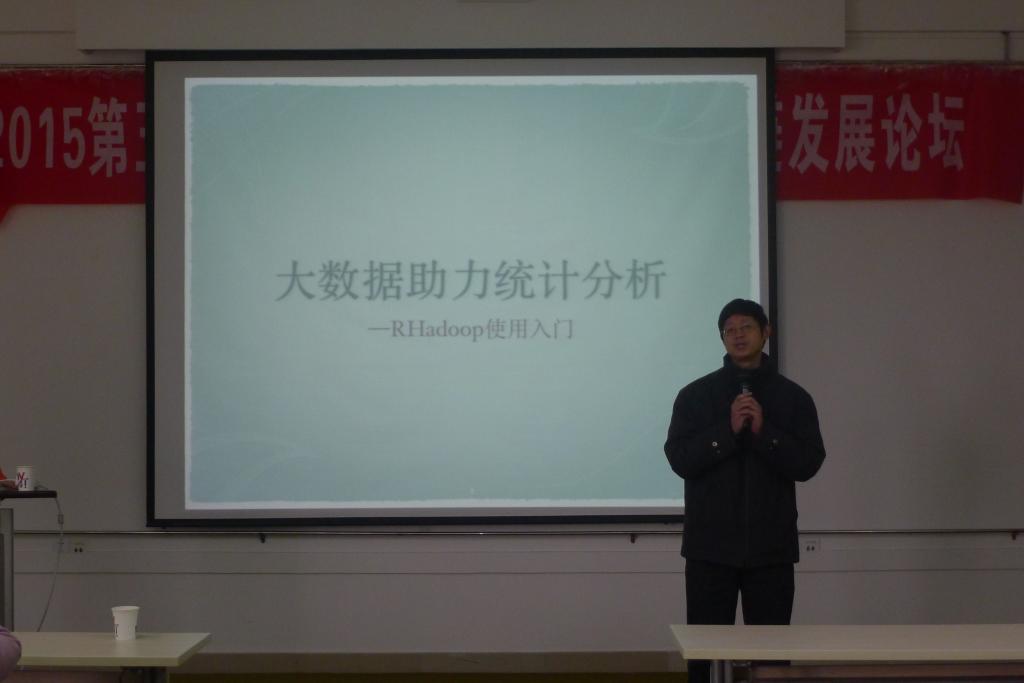 2015年12月28日上午10点,珠海金山西山居高级系统工程师尹会生于启智楼406学术报告厅讲授了题为“大数据助力统计分析—RHadoop使用入门”的学术讲座。讲座由电子商务重点实验室常务副主任黄辉教授主持。